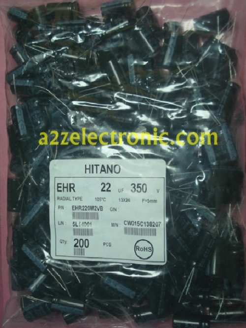 22 MFD / 350 VDC, 105' C, 13x26mm, (QTY 200 Nos.) RADIAL LEAD ( PKD ) CAPACITOR HITANO