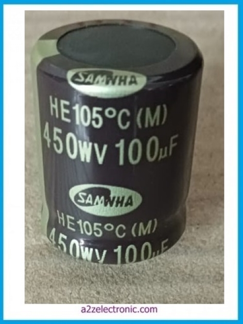 100 MFD / 450 VDC, 105'C ( ELECT ) 25x30mm SNAPIN TERMINAL CAPACITOR SAMWHA